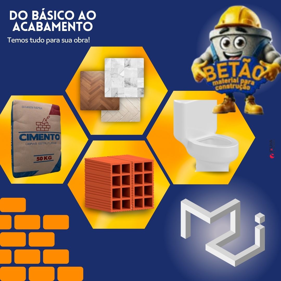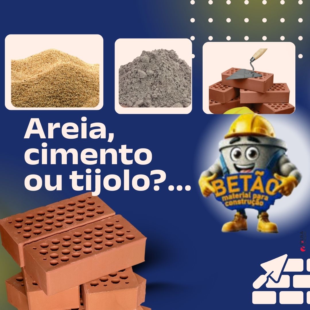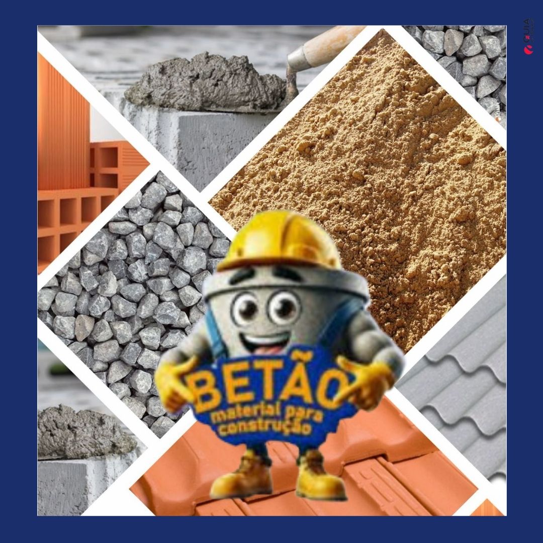 - Materiais básicos: areia, brita, cimento, blocos e ferragens.
